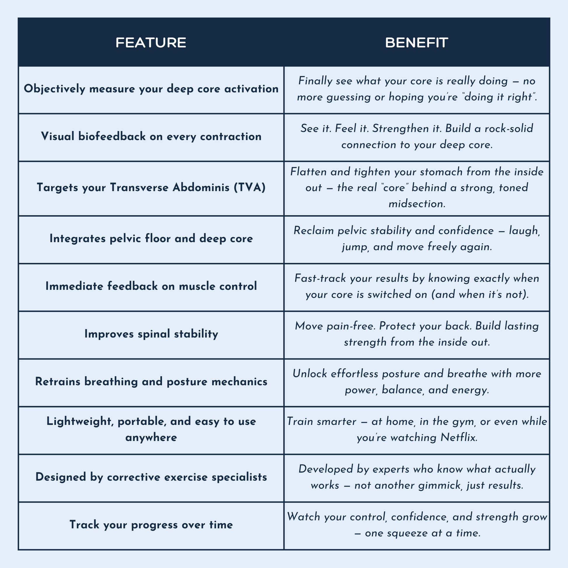 The real-time biofeedback helps you avoid âdomingâ or over-bracing, making it safer than guessing your way through exercises.